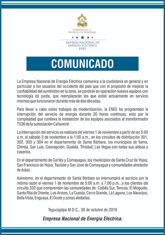 «Apagón» de 20 horas es para cambiar equipo en centrales hidroeléctricas, según gerente #ENEE