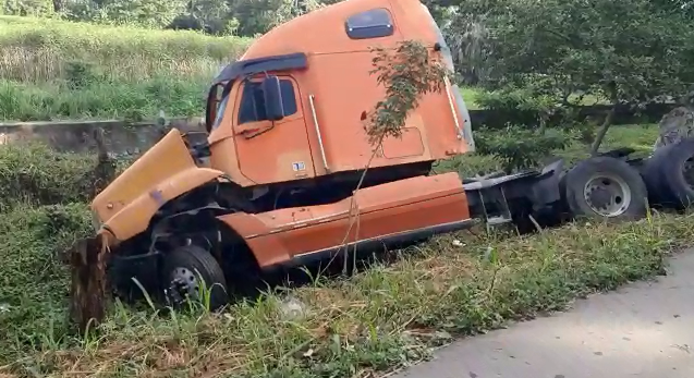 Rastra se accidenta en carretera de El Pino a Santa Ana, La Ceiba