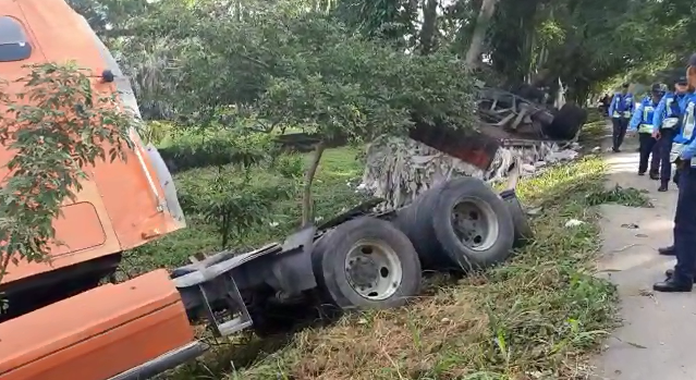 Rastra se accidenta en carretera de El Pino a Santa Ana, La Ceiba