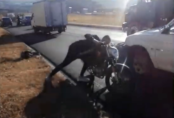 Un motociclista sufrió un accidente en el anillo periférico a la altura de Perisur la mañana de este jueves, por fortuna el percance solo deja perdidas materiales y el susto.