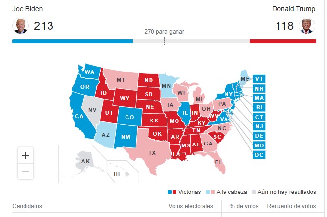 Asimismo, la Junta Electoral ha decidido mantener abierto otro colegio de Sampson durante 24 minutos más, otro del condado de Cabarrus durante 17 minutos más y otro del condado de Guilford abierto otros 34 minutos, según ha informado la cadena de televisión CNN. Por lo tanto, los resultados de todo el estado se retrasarán hasta que no se hayan cerrado todos los colegios electorales de Carolina del Norte, uno de los estados clave en la carrera hacia la Casa Blanca. Estaba previsto que los colegios electorales en el estado cerraran a las 19.30 horas (hora local), pero la extensión hará que los primeros resultados se conozcan alrededor de las 20.15 horas.
