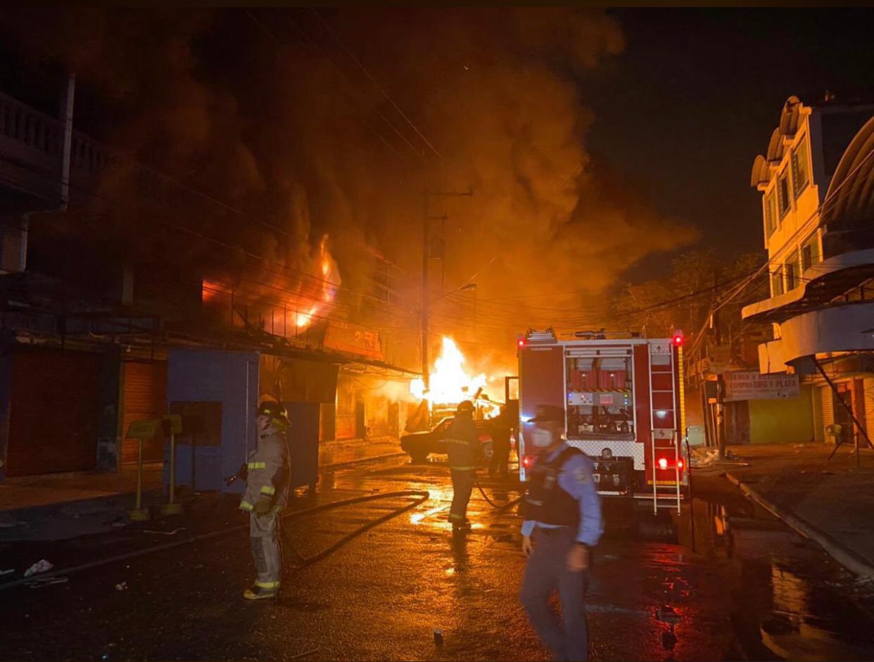 Un voraz incendio consume varios locales comerciales aledaños al mercado Medina de San Pedro Sula