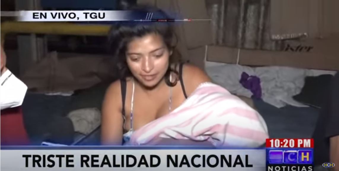 Norma Leticia Sánchez una madre de 22 años, con una niña de 10 meses en brazos, vive en condiciones infrahumanas en una estación del trans-450 a la altura de la colonia Kennedy de la capital.