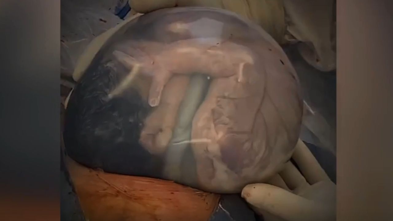 Un ginecólogo de Buenos Aires, Argentina, mostró espectacular momento en el que un bebé se encuentra dentro de su bolsa amniótica poco después que su madre diera a luz.