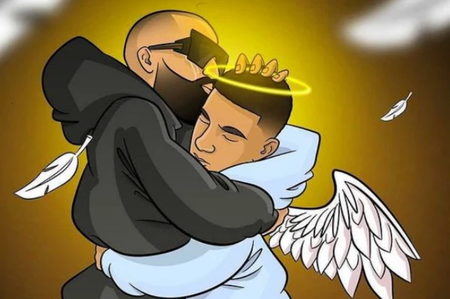 El artista acompañó sus palabras con una emotiva ilustración en la que se le observa abrazando a Justin, quien aparece dibujado como un ángel.