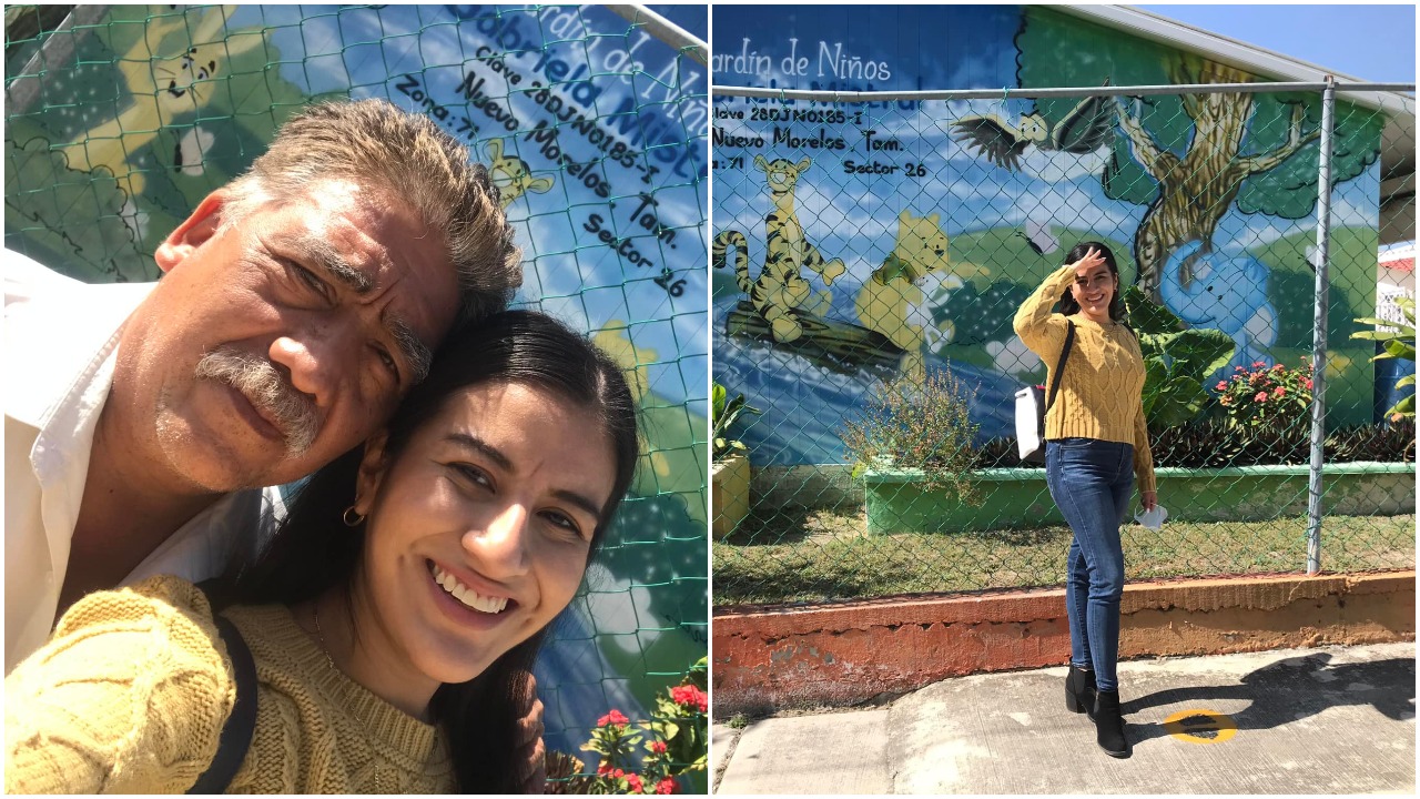 Angie es maestra de un jardín de niños ubicado en el municipio de Nuevo Morelos. Egresada de la Escuela Normal Federal de Educadoras ‘Mtra. Estefanía Castañeda’, la joven quiso que su padre estuviera presente en el inicio de su trayectoria profesional como docente.