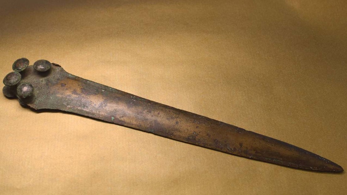 Un residente de Eslovaquia que disfrutaba de una jornada de descanso en las cercanías de la ciudad de Hlohovec, descubrió este verano una gran daga de bronce de casi 26 cm de largo.