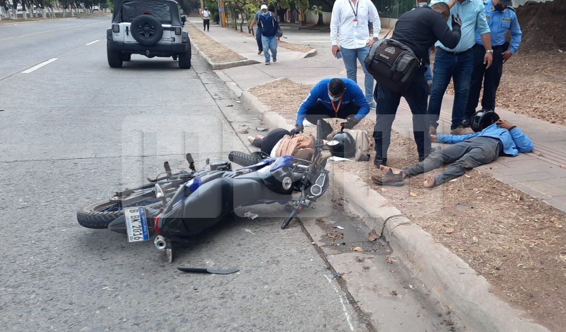 Una pareja que se conducían en motocicleta resultó herida luego de un fuerte accidente de transito en un tramo del Bulevar Suyapa en la capital.