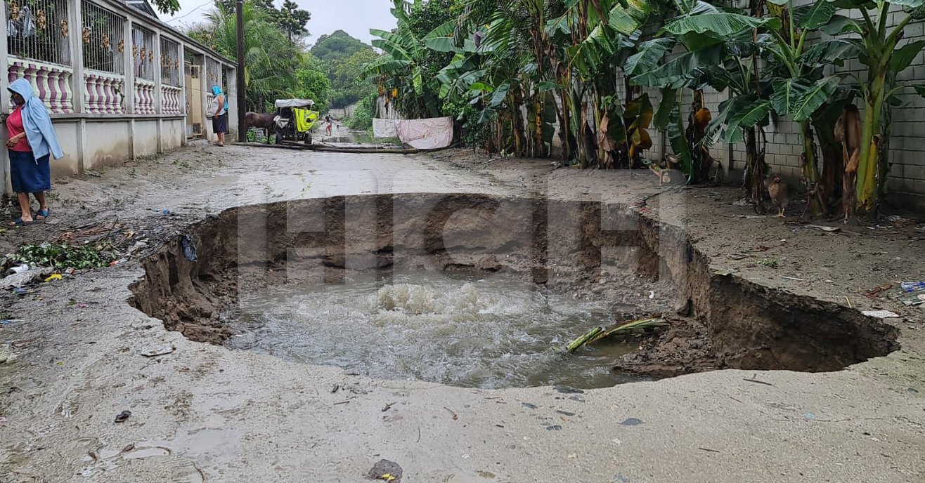 En horas de la noche había un pequeño agujero pero al amanecer el lunes se encontraron con un hoyo con unos cinco metros de diámetro que pone en riesgo hasta las mismas viviendas aledañas.