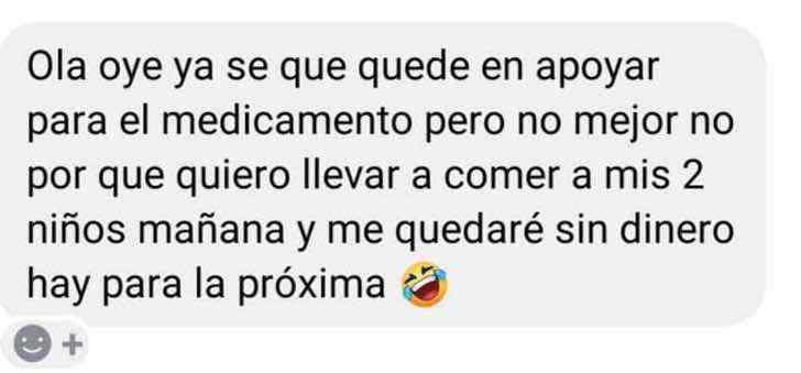 Incluso mostró capturas de pantalla de los mensajes de otras personas que se habían comprometido a aportar, pero que a último momento renunciaron por motivos que no son urgentes y con cierto tono de burla.