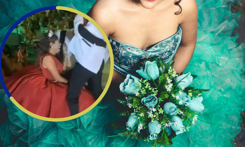 Una vez que llegó el momento, la familia de la quinceañera gritaba emocionada por la escena, pero de pronto, el padre celoso apareció y quería golpear a los chicos.
