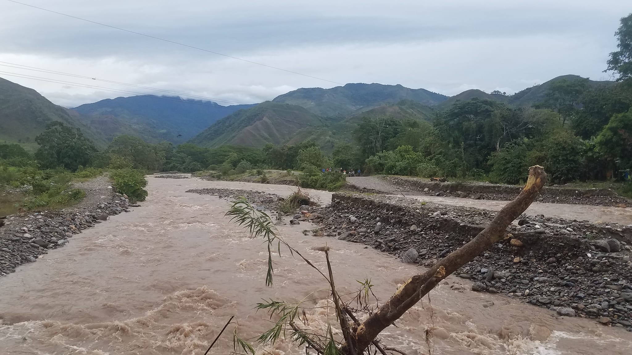 Las lluvias se mantienen sobre la zona y las corriente se mantiene bastante fuerte con un caudal de mucho volumen lo que no permite que se pueda hacer un tipo de trabajo por el momento.