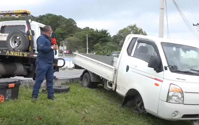 El percance vial ocurrió en el kilómetro 5 de la carretera al norte donde un vehículo se salió de la carretera dejando pérdidas materiales.