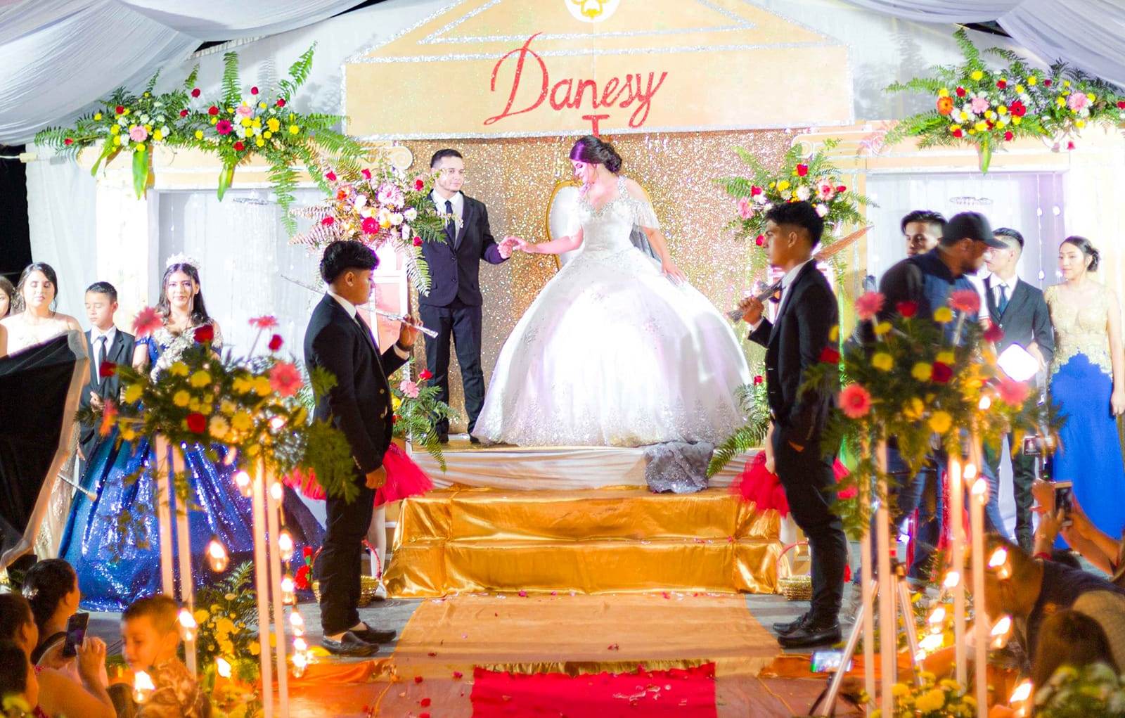 Luciendo un esplendido vestido blanco, tipo princesa la bella y simpática reina, dijo sentirse muy feliz por el apoyo que sus padres y amigos le dieron para lograr este cetro.