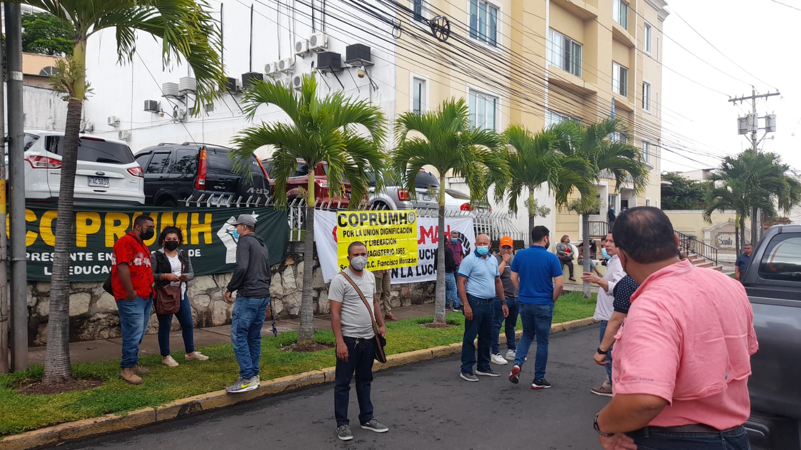 Docentes protestaron en las afueras de la Comisión Nacional de Banca y Seguros exigiendo que «saquen las manos» del Instituto Nacional de Previsión del Magisterio (Inprema).
