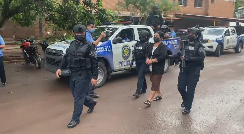 Bajo fuertes medidas de seguridad está siendo trasladadada la señora Herlinda Montes Bobadilla de las instalaciones de Fuerzas Especiales de la Policía Nacional hacia la Corte Suprema de Justicia.