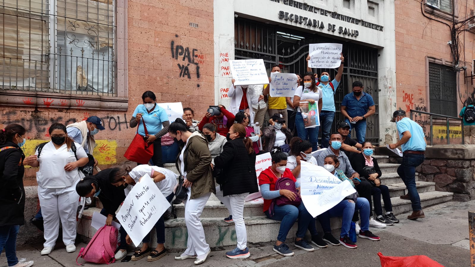 Protesta frente a la secretaria de salud por del personal de salud descentralizado, de los municipios del departamento de Choluteca, Concepción de María, Duyure y san Marcos de Colón.