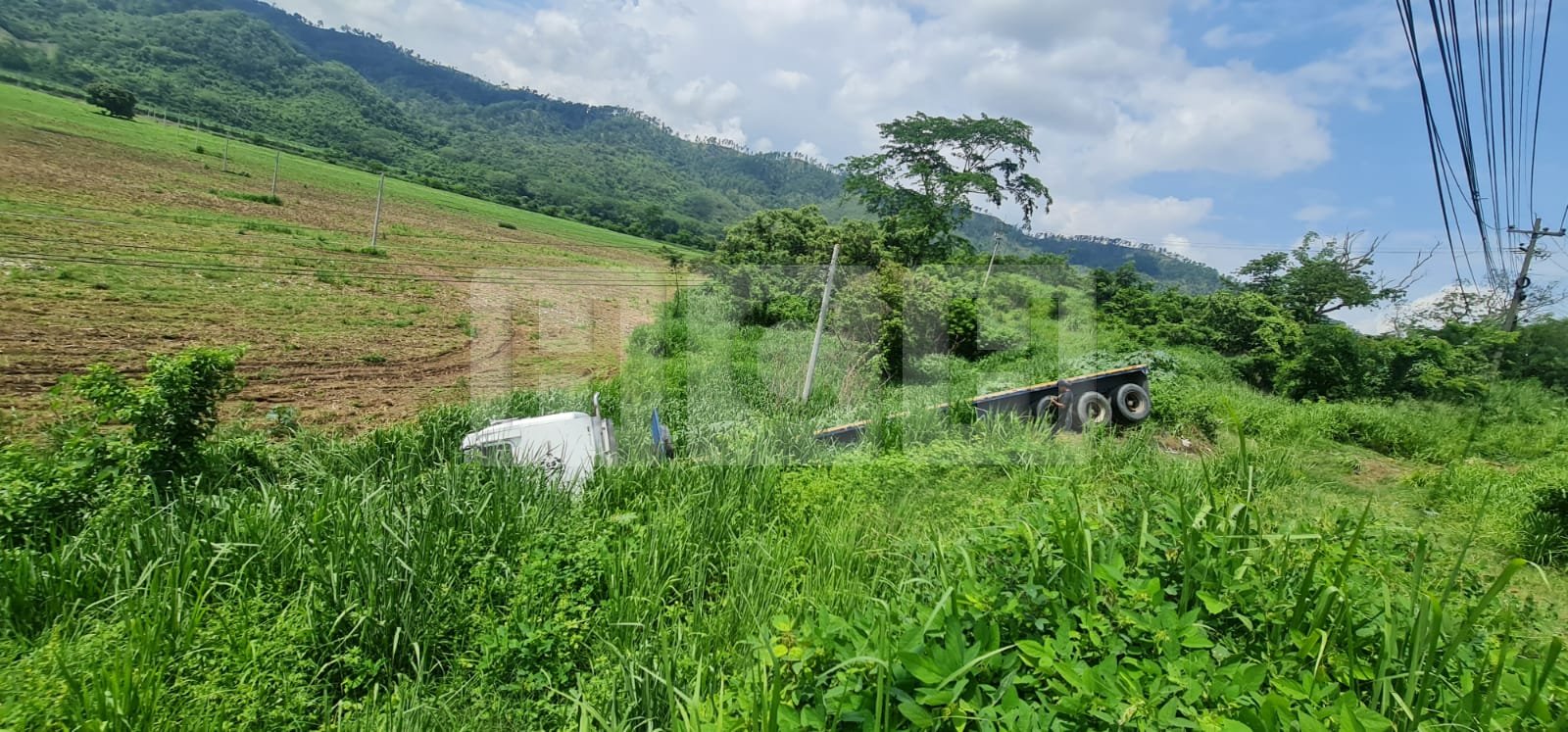 A inmediaciones de Casa Quemada en Cofradía, Cortés el conductor de una pesada rastra se despistó y cayó a una hondonada.