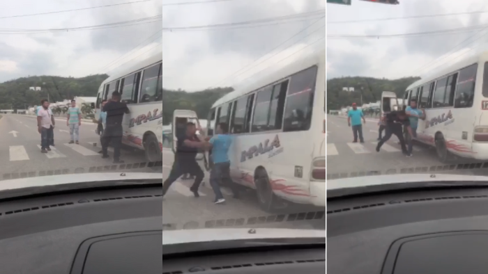 Conductores de buses rapiditos se fueron a los golpes, en San Pedro Sula, hasta el momento, no se sabe la razón que los habría orillado al pleito.