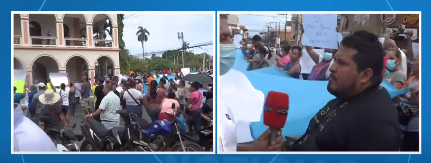 Conductores de taxi, gremio magisterial y vendedores ambulantes protestan frente a la alcaldía en La Ceiba, Atlántida.