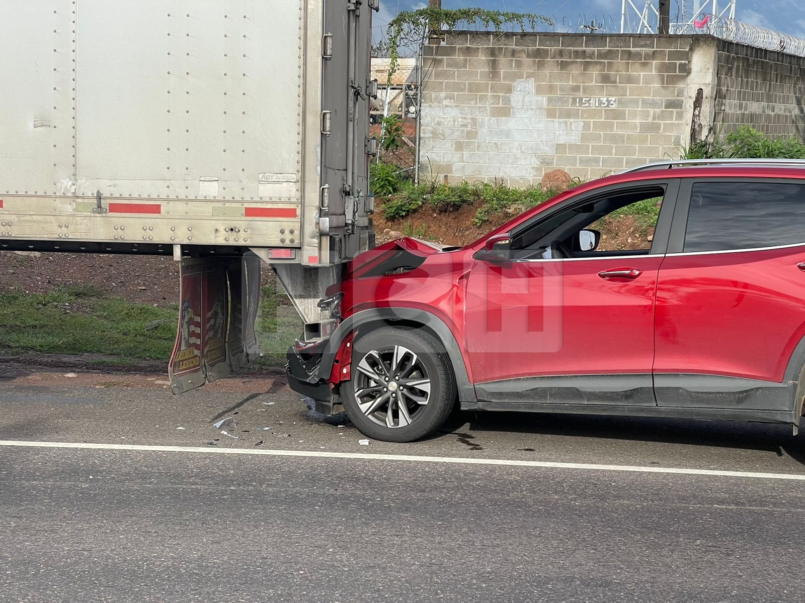 Un brutal impacto de una camioneta contra la parte trasera de una rastra estacionada, estuvo a punto de provocar una tragedia, en la internacional ca-5 frente al aeropuerto Palmerola de Comayagua.