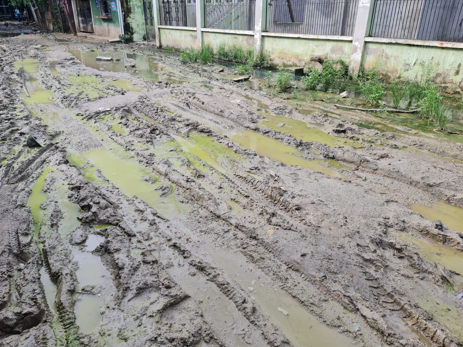 Un verdadero «calvario pantanoso» viven los vecinos de la colonia Los Ángeles de San Pedro Sula ya que las calles están totalmente destruidas.