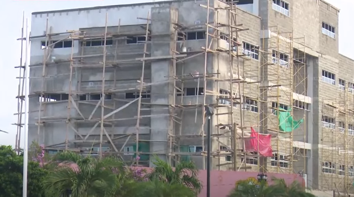 La estructura de entre 6 y 8 niveles fue detenida, ingenieros y albañiles ya no se presentaron el jueves a laborar debido a que se les notificó que la secretaría de seguridad no cuenta con fondos para continuar con la obra.