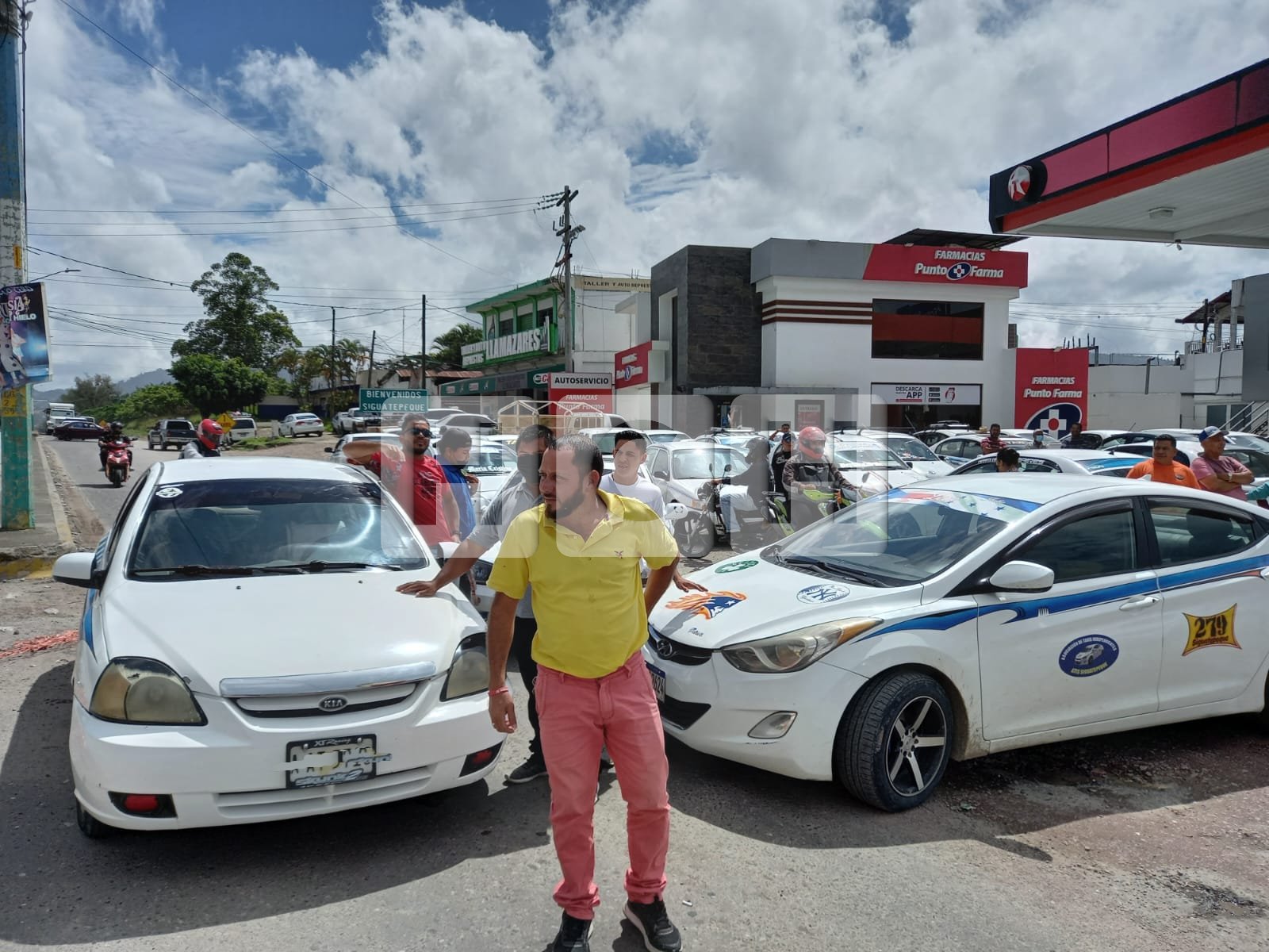 Cansados de esperar y escuchar falsas promesas rubro de taxis se toma bulevar Francisco Morazán en la ciudad Siguatepeque, reclamando el mal estado de las calles.