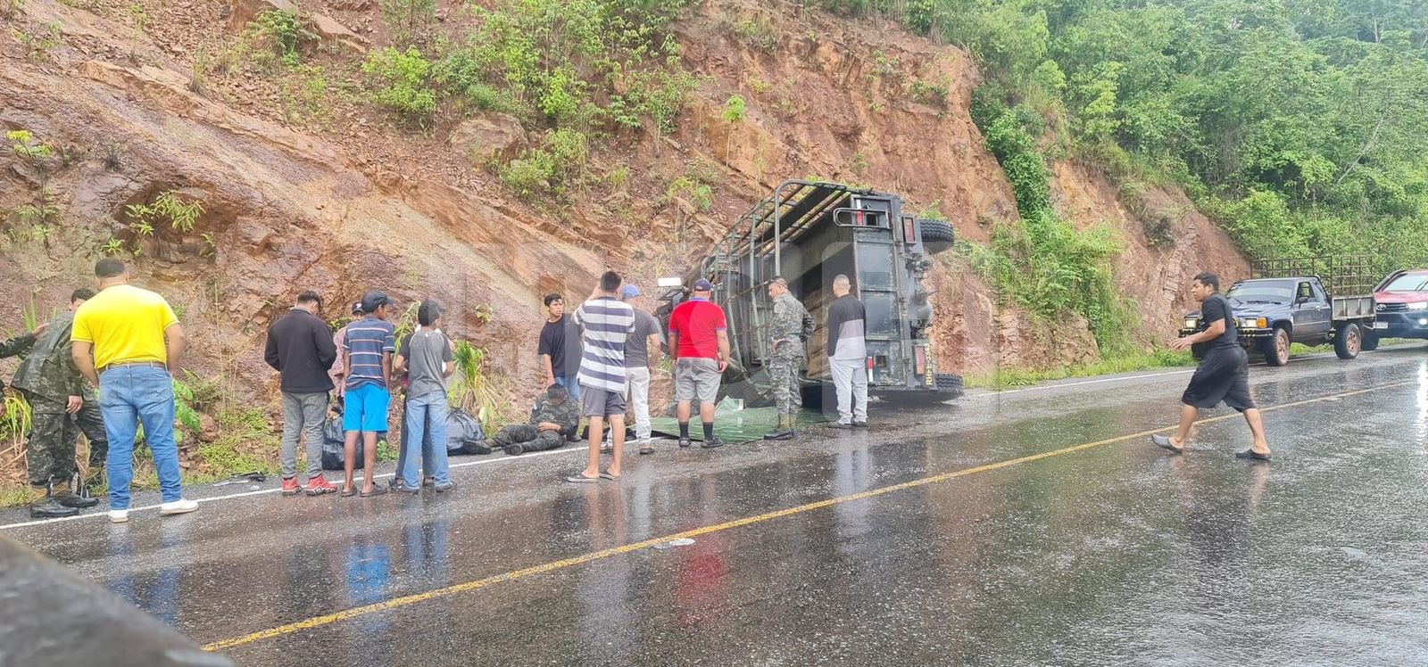 Varios efectivos militares salieron con lesiones en un aparatoso accidente vial, cuando un comando de las Fuerzas Armadas volcó en la carretera a la altura de La Laguna en Olancho.