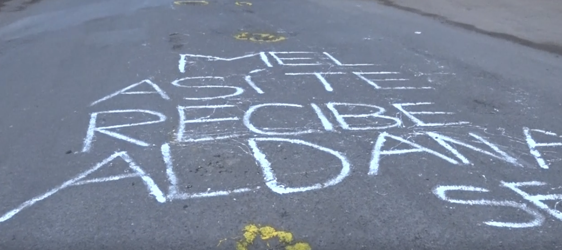 «Mel así te recibe Aldana» escribieron en el pavimento, donde además marcaron en color amarillo cada uno de los baches que hay en la carretera que conecta con el departamento de Olancho de donde es originario el expresidente y asesor presidencial Mel Zelaya.
