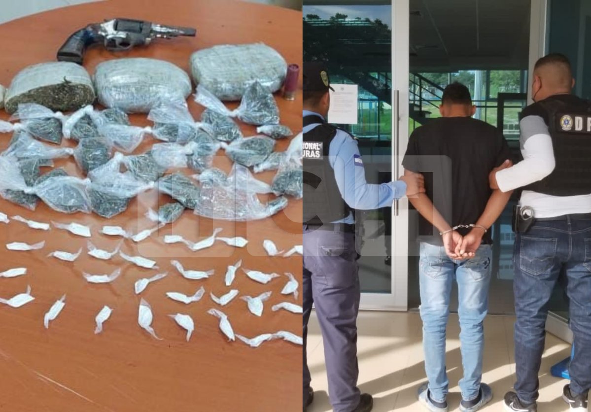 Lempira. 06 de julio, 2022. -Con la finalidad de dar respuesta a las acciones ilícitas, la Policía Nacional mediante vigilancia y seguimiento logró la captura de un sospechoso por el delito de tráfico de drogas y porte ilegal de arma de fuego.