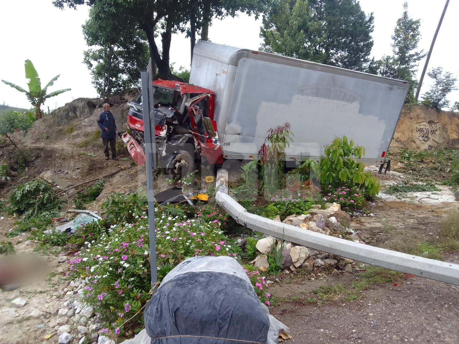 En el sector de Carrizalitos de Siguatepeque un camión se salió de la calzada e impacto violentamente contra un poste de concreto dejando al conductor con una grave lesión en una de sus piernas.