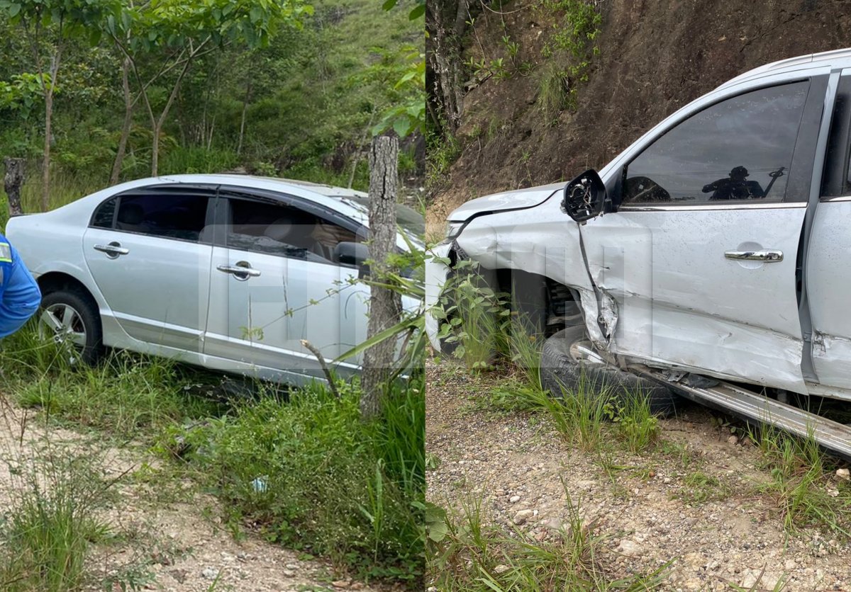Una colisión entre un turismo y una camioneta deja varios miles en daños materiales en la carretera entre Santa Rosa de Copan hacia Gracias, Lempira.