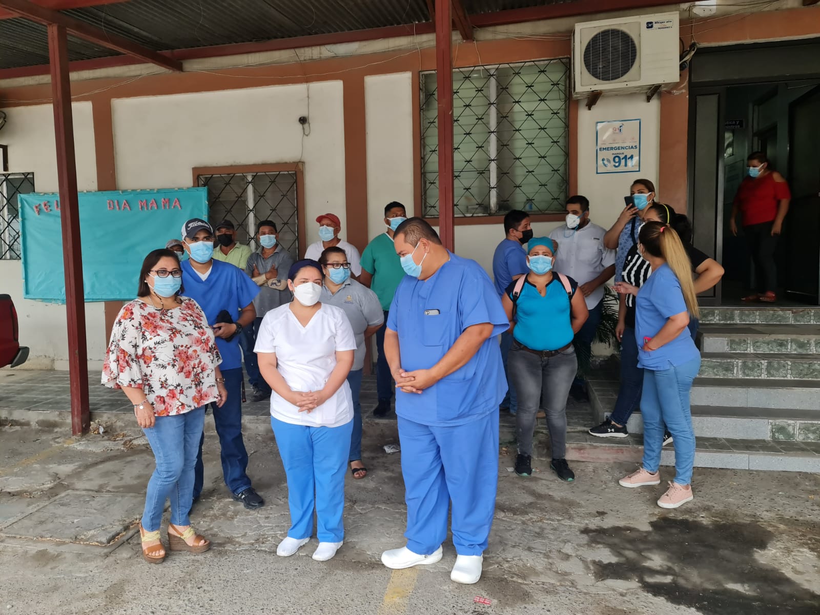 Personal médico del hospital Leonardo Martínez de San Pedro Sula, norte de Honduras, protesta este lunes ante la falta de pago de dos meses.