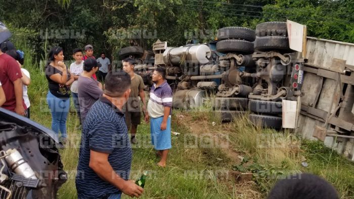 El conductor del pick up donde se conducía la mujer salió gravemente herido ,luego que impactaran violentamente contra una cisterna, la cual volcó en una hondonada.