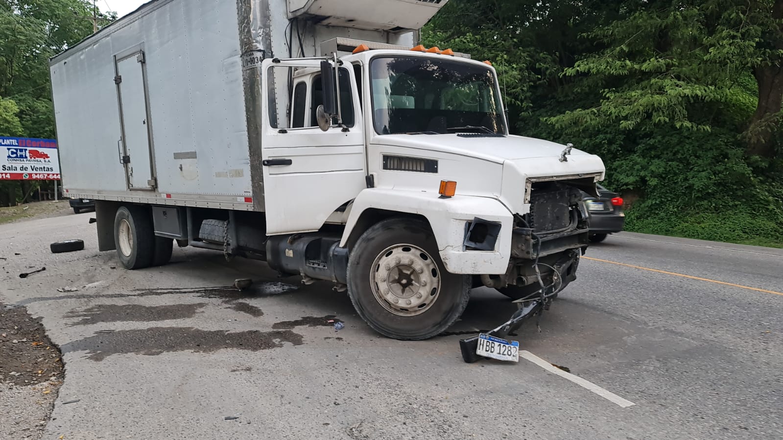 Un turismo fue a parar a un muro en una pequeña hondonada tras colisionar contra una camión en la carretera que conduce a Cofradía en Cortés.