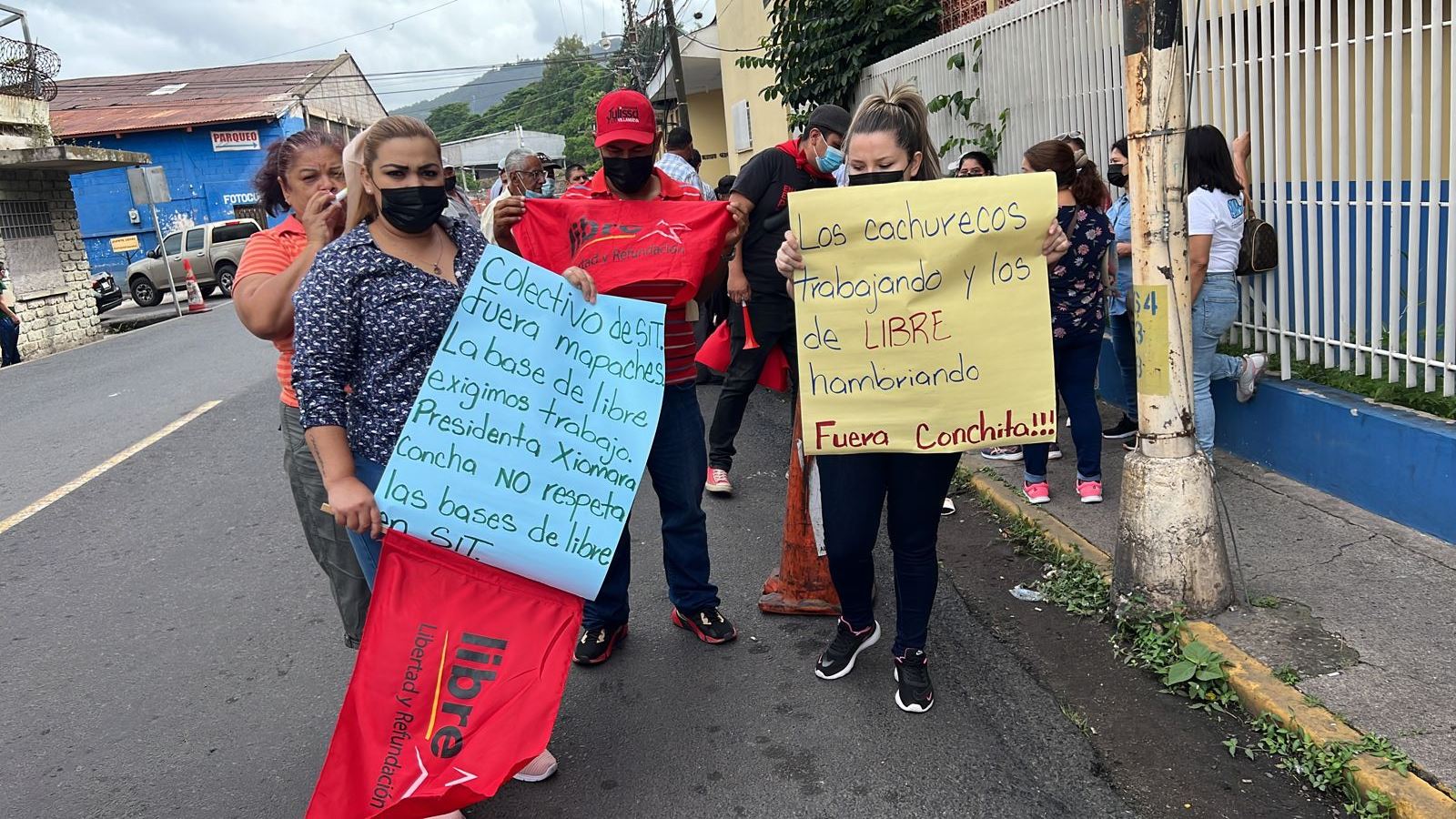 Exigiendo el reintegro de personal despedido y que pertenece a Libertad y Refundación (Libre) los exempleados de la Secretaría de Inversiones y Transporte (SIT) se tomaron la calle de acceso a la institutción.