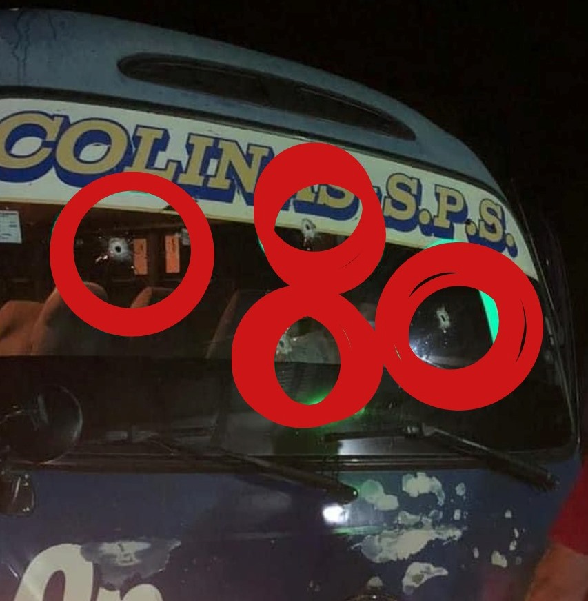 Bus de la ruta San José de Colinas, Santa Bárbara hacia San Pedro Sula fue tiroteado en la carretera pavimentada a la altura de Pueblo Nuevo.