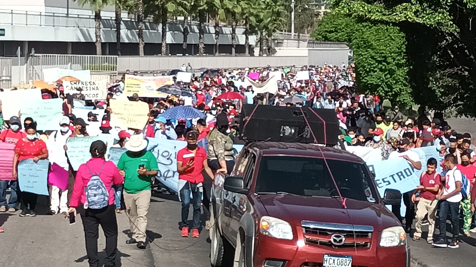 Los campesinos del Bajo Aguan se desplazaron por las calles de la capital, desde la sede de las Stibys hasta Casa Presidencial donde exigen se investigue el despojo de tierras.