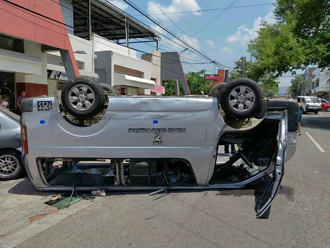 Un turismo no habría hecho su respectivo alto chocando con un busito que dio unas tres vueltas tras el impacto.