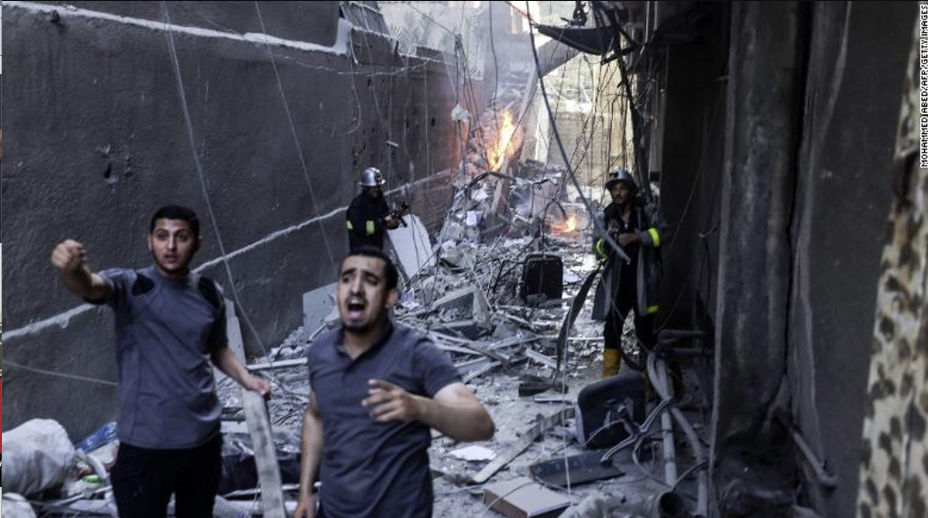 Un productor de CNN en Gaza vio cómo los médicos sacaban dos cuerpos de un edificio llamado Torre Palestina que había sido alcanzado por uno de los ataques.