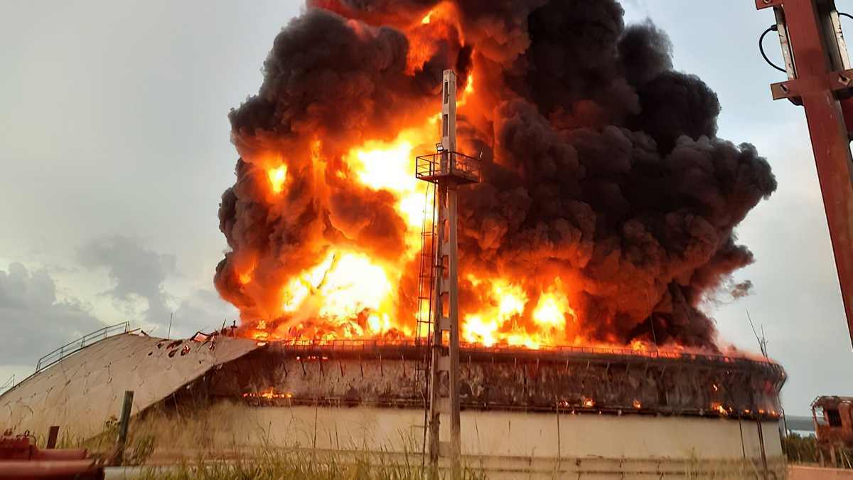 Los depósitos de crudo afectados, con una capacidad de 50.000 metros cúbicos, se encuentran en la Base de Supertanqueros de un área industrial de Matanzas, cerca de la la termoeléctrica Antonio Guiteras, una de las mayores de Cuba.