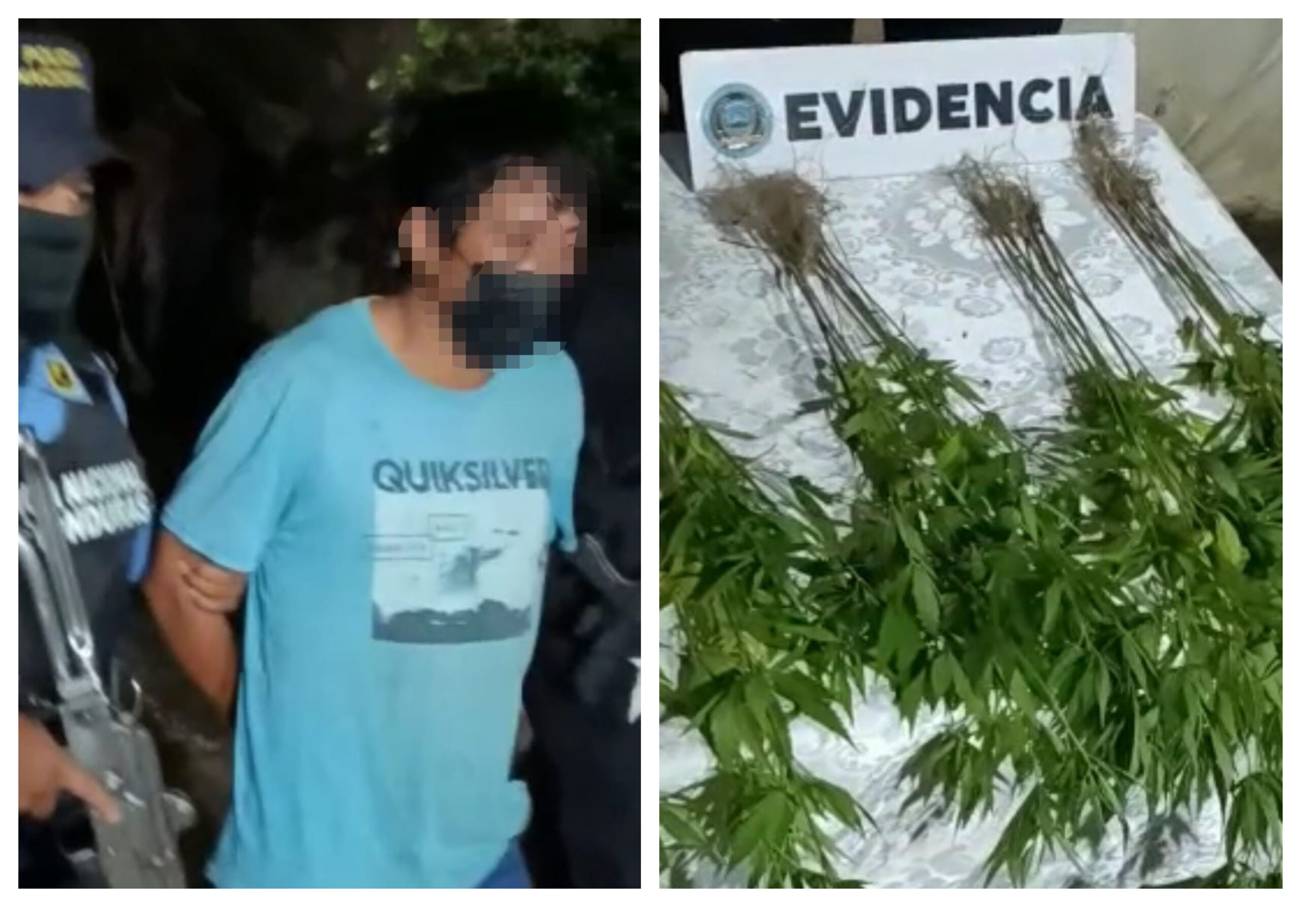 La Dirección Policial Anti Maras y Pandillas Contra el Crimen Organizado, DIPAMPCO, mediante allanamiento de morada legalmente autorizado en la aldea Puente Curva, en el municipio de El Rosario le dio detención a una persona en posesión de varias plantas de hierba supuesta marihuana.