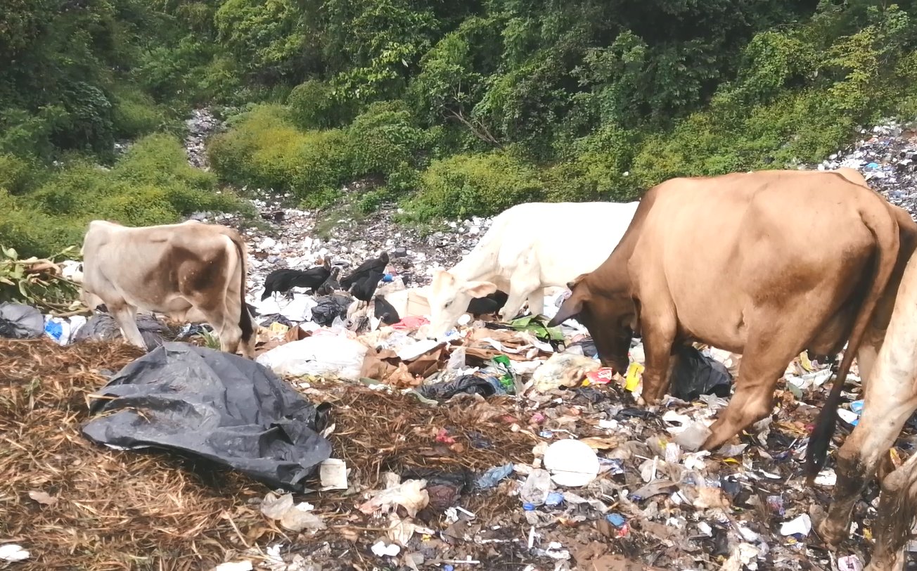 ¡Previo a su ordeño! Ganado «se alimenta» en el basurero municipal de Tencoa, Santa Bárbara