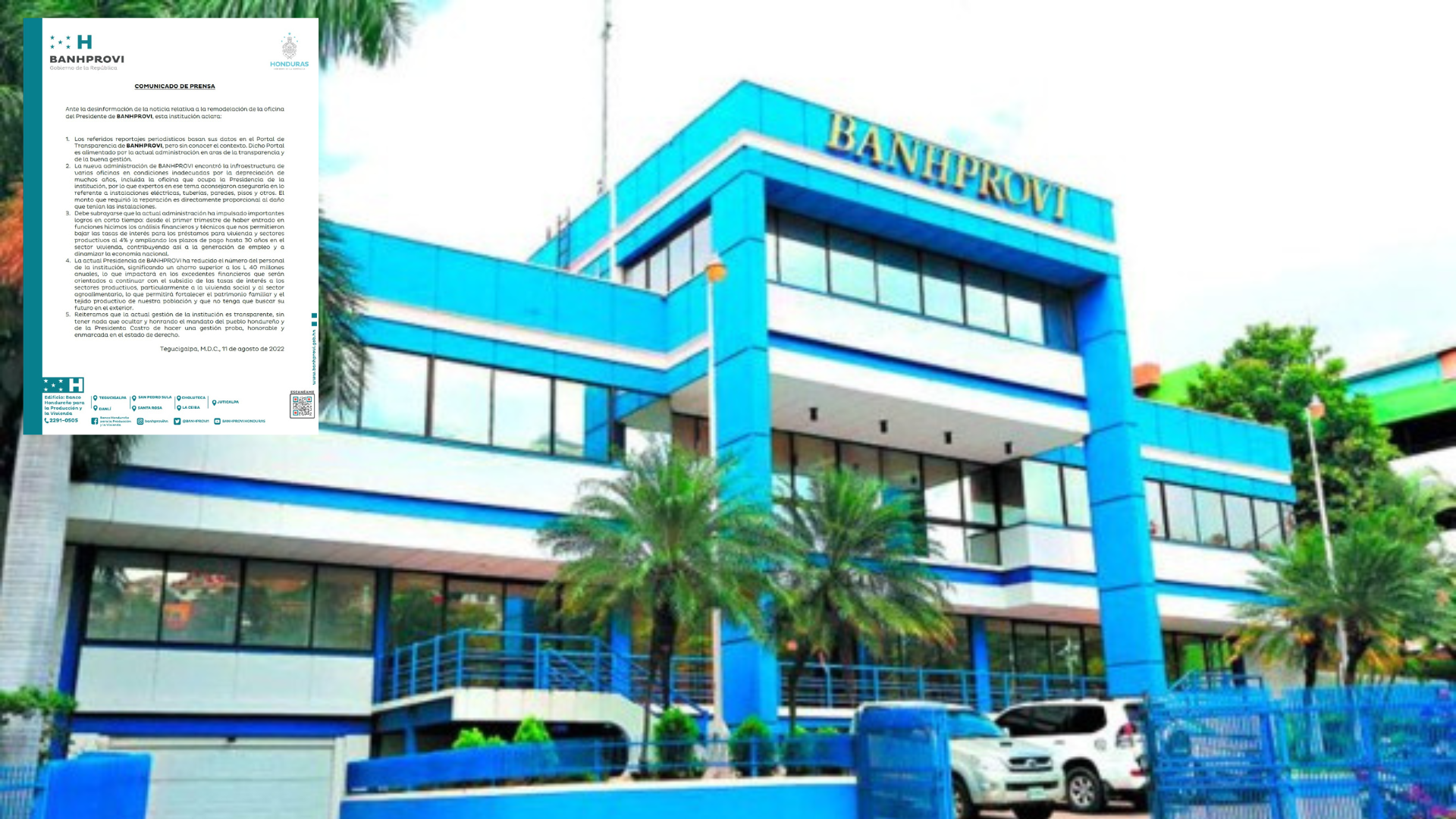 Gobierno se pronuncia ante supuesta remodelación de oficina de Banhprovi por medio millón de lempiras