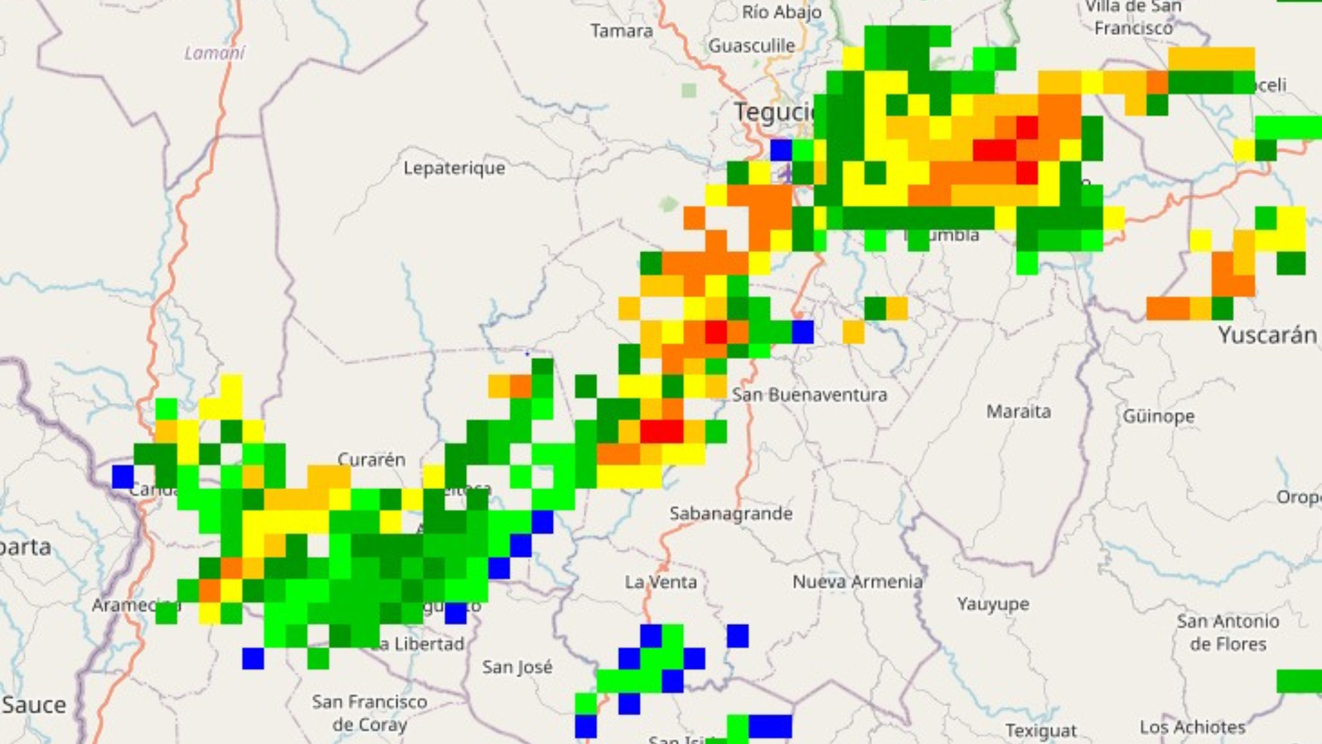 Esta noche, una línea de nubes verticales genera lluvias y chubascos moderados a fuertes con actividad eléctrica y vientos racheados que se extienden desde los municipios del Sur de Francisco Morazán hasta el municipio del Distrito Central, #PrevenirEsVivir. pic.twitter.com/PvYyKFyWpK