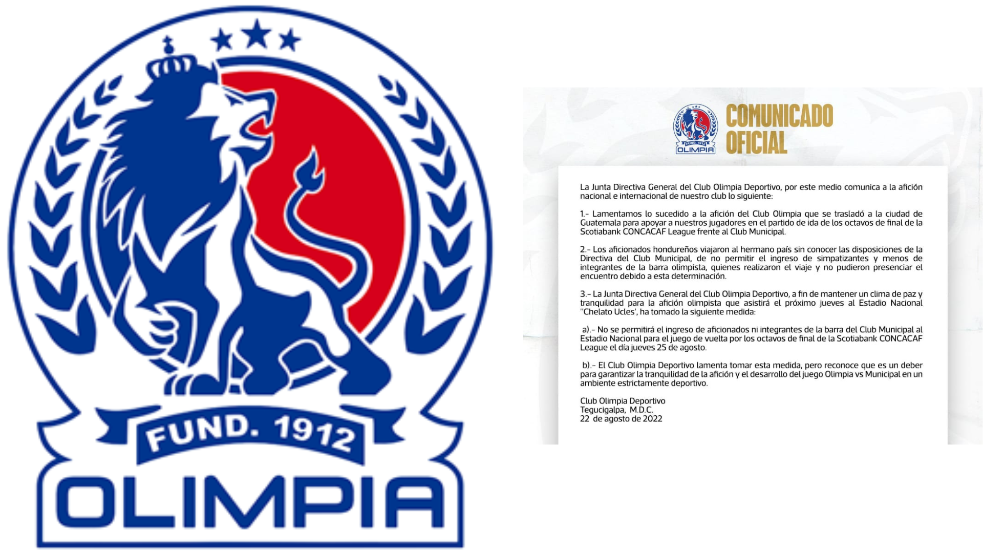 En el comunicado inician lamentando los hecho violentos que ocurrieron en Guatemala, donde varios aficionados de Olimpia fueron agredidos y otros detenidos.