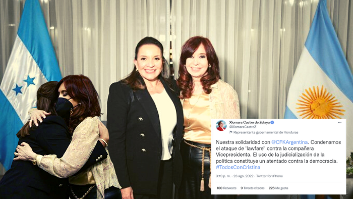 La Presidenta de Honduras, Xiomara Castro, expresó su solidaridad con la vicepresidenta de Argentina, Cristina Fernández.