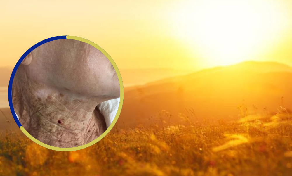 La imagen fue publicada en el Journal of The European Academy of Dermatology and Venereology y muestra la cara y el cuello de una mujer de 92 años que, según los informes, usó crema hidratante con protección UV en la cara pero no en el cuello. El resultado es una notable diferencia en el daño UV visible.