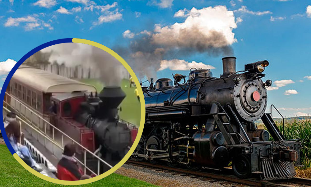 Locomotora que arrastra vagones con carga o personas cruza tribuna como si nada en medio de los cotejos de fútbol